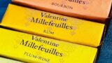 お花がレトロじ描かれたショコラサブレの箱を並べて満足気な妻![]()